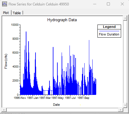 - Duración del flujo (Flow Duration): es el intervalo de entrada para cada caudal; no controla el paso de cálculo. Por ejemplo, para datos diarios la duración típica es de 24 h. Sin embargo, el paso de cálculo (computational increment) no debe ser mayor que la duración. Duraciones largas permiten combinar registros de bajo interés (épocas de estiaje) en un solo intervalo.