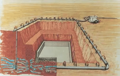 Un caso típico es la instalación de sistemas de well-points o pozos de abatimiento del nivel freático alrededor de una excavación profunda: el ingeniero debe calcular cuánto bajar el nivel del agua y a qué caudal de bombeo, lo que implica realizar un análisis hidrogeológico (ecuación de Darcy, radio de influencia, coeficientes de permeabilidad) para garantizar que la excavación no se inunde. Además, sin un estudio adecuado, podría ocurrir levantamiento de la losa de fondo por empuje hidrostático si se libera la contención. Por tanto, en cualquier proyecto hidráulico que involucre trabajos subterráneos o bajo el nivel freático, es imprescindible modelar el flujo de agua subterránea para diseñar medidas de control: pantallas impermeables temporales, drenajes aliviaderos, bombas de achique, etc.